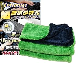 商品名:Enfsdtyec 超吸水 大判 極厚 マイクロファイバークロス 車拭きクロス 洗車タオル 二重構造 ながら洗車 両面 拭き上げ 窓拭き 吸水怪獣 1200GSM 一発拭き取り 傷つかない 水アカ落とし スポンジ 蛍光グリーン
